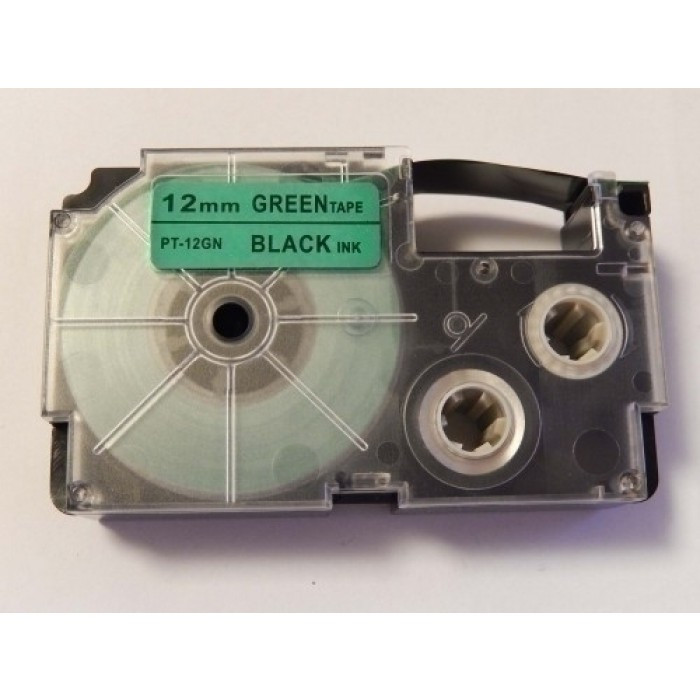 Casio XR-12GN utángyártott feliratozószalag kazetta zöld alapon fekete nyomtatás 12 mm * 8m