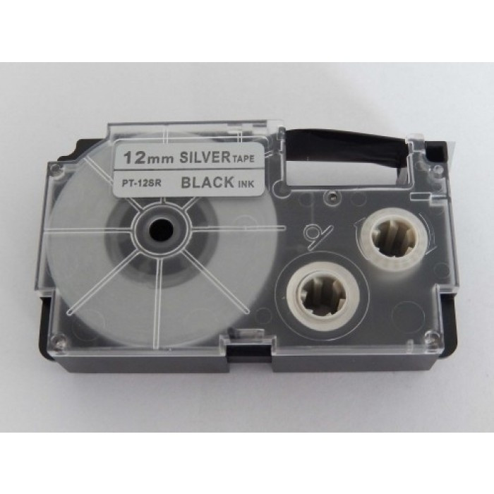Casio XR-12SR utángyártott feliratozószalag kazetta ezüst alapon fekete nyomtatás 12 mm * 8m