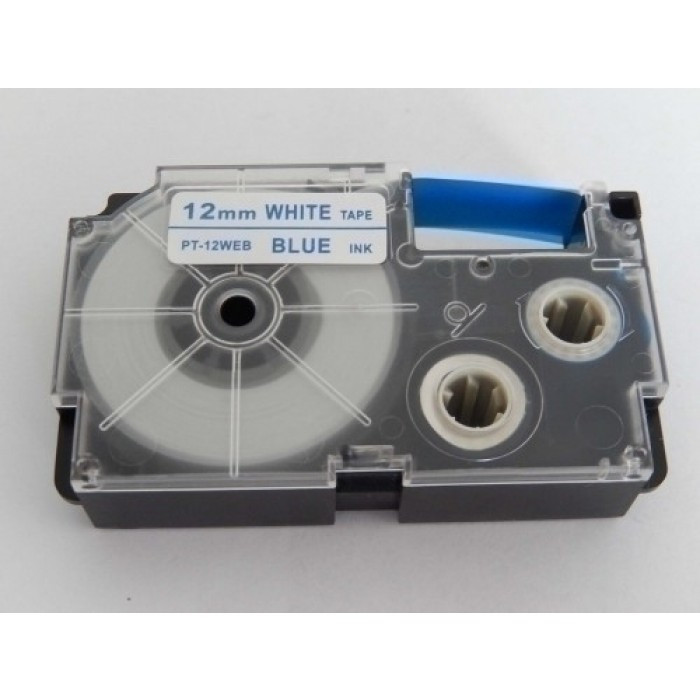 Casio XR-12WEB utángyártott feliratozószalag kazetta fehér alapon kék nyomtatás 12 mm * 8m