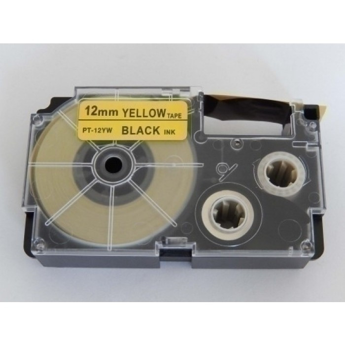 Casio XR-12YW1 utángyártott feliratozószalag kazetta sárga alapon fekete nyomtatás 12 mm * 8m