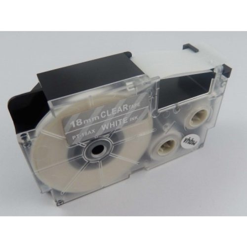 Casio XR-18AX utángyártott feliratozószalag kazetta átlátszó alapon fehér nyomtatás 18 mm * 8m