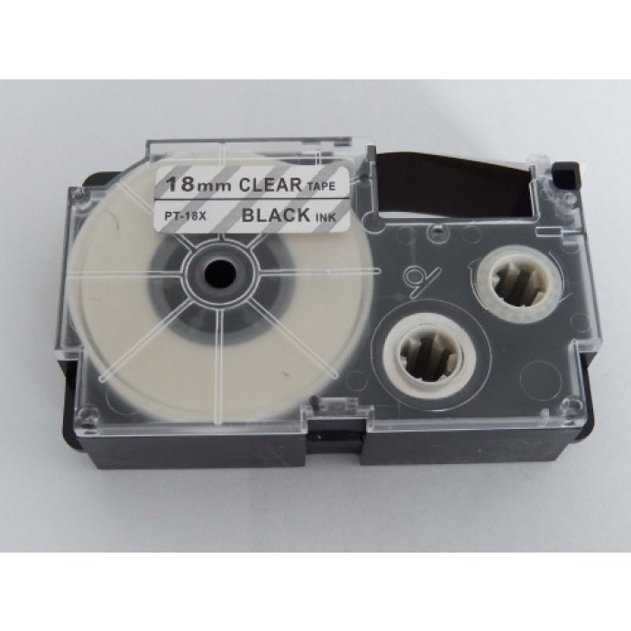 Casio XR-18X utángyártott feliratozószalag kazetta átlátszó alapon fekete nyomtatás 18 mm * 8m