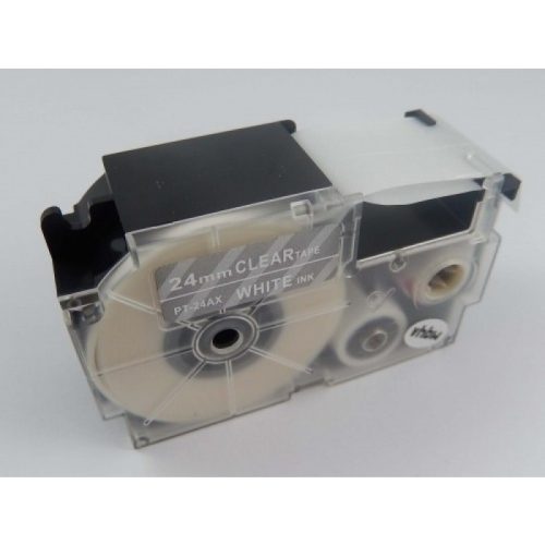 Casio XR-24AX utángyártott feliratozószalag kazetta átlátszó alapon fehér nyomtatás 24 mm * 8m