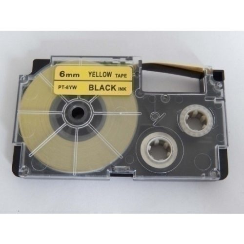 Casio XR-6YW1 utángyártott feliratozószalag kazetta sárga alapon fekete nyomtatás 6 mm * 8m