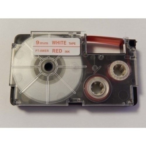 Casio XR-9WER utángyártott feliratozószalag kazetta fehér alapon piros nyomtatás 9 mm * 8m