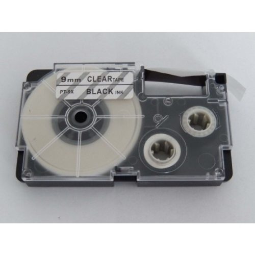 Casio XR-9X utángyártott feliratozószalag kazetta átlátszó alapon fekete nyomtatás 9 mm * 8m