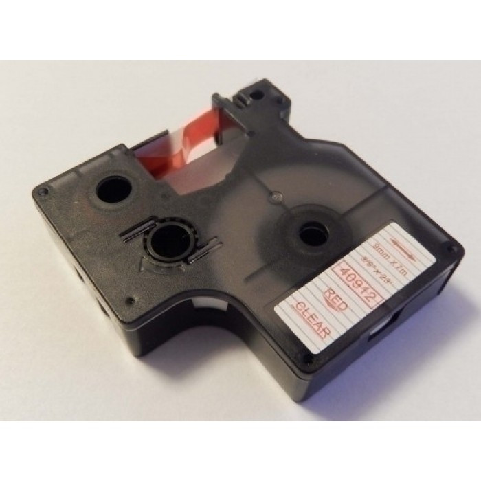 Dymo 40912 átlátszó alapon piros D1 utángyártott 9mm*7m feliratozószalag