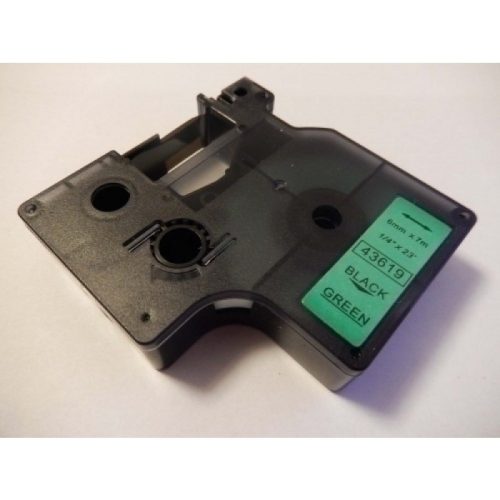 Dymo 43619 D1 Zöld alapon Fekete 6mm * 7m utángyártott feliratozószalag kazetta