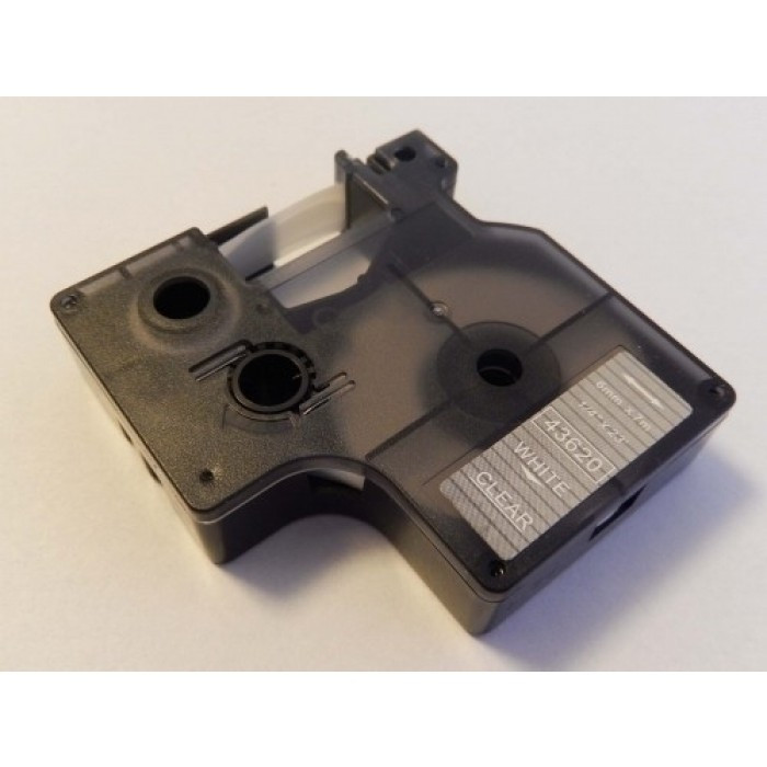 Dymo D1 43620 6mm * 7m átlátszó alapon fehér utángyártott feliratozószalag kazetta