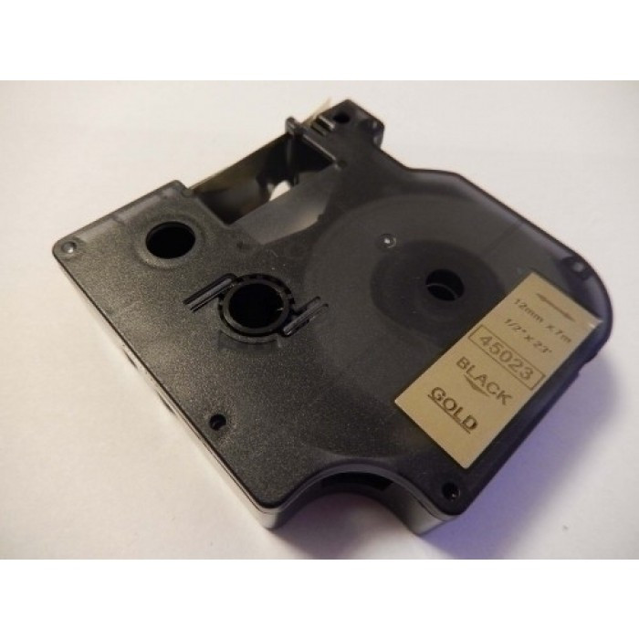 Dymo D1 45023 12mm * 7m arany alapon fekete utángyártott feliratozószalag kazetta