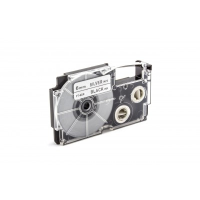 Casio XR-6SR1 utángyártott feliratozószalag kazetta ezüst alapon fekete nyomtatás 6 mm * 8m